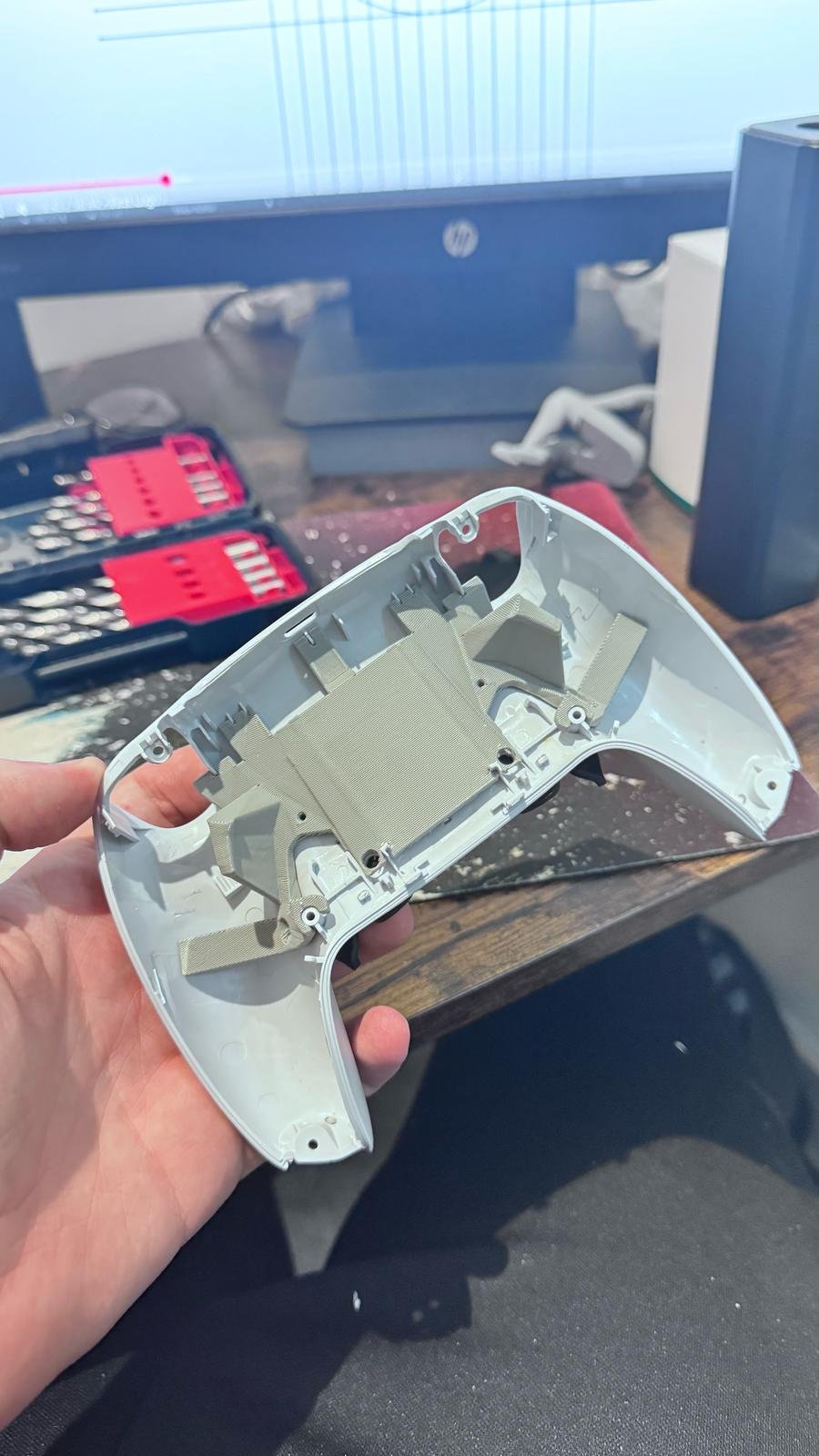 The project followed an iterative cycle of prototyping, testing and refinement. Each version was 3D printed and fitted to a real DualSense controller, allowing us to make targeted improvements to ergonomics, actuation feel, curvature and durability. Through this process we shaped a design that met INCNTRL’s specific functional and comfort requirements.